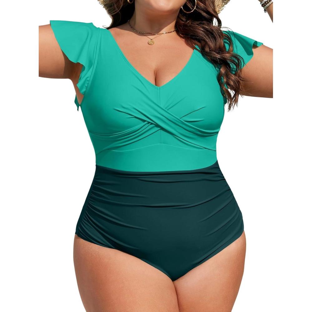Score big on B2prity Women’s Plus Size One Piece Swimsuit Tummy Control Ruffle Bathing Suit V Neck High Waist Wrap Swimwear(Green dark Green) and accessories during our BOGO sale. Buy one, get one 50% off!